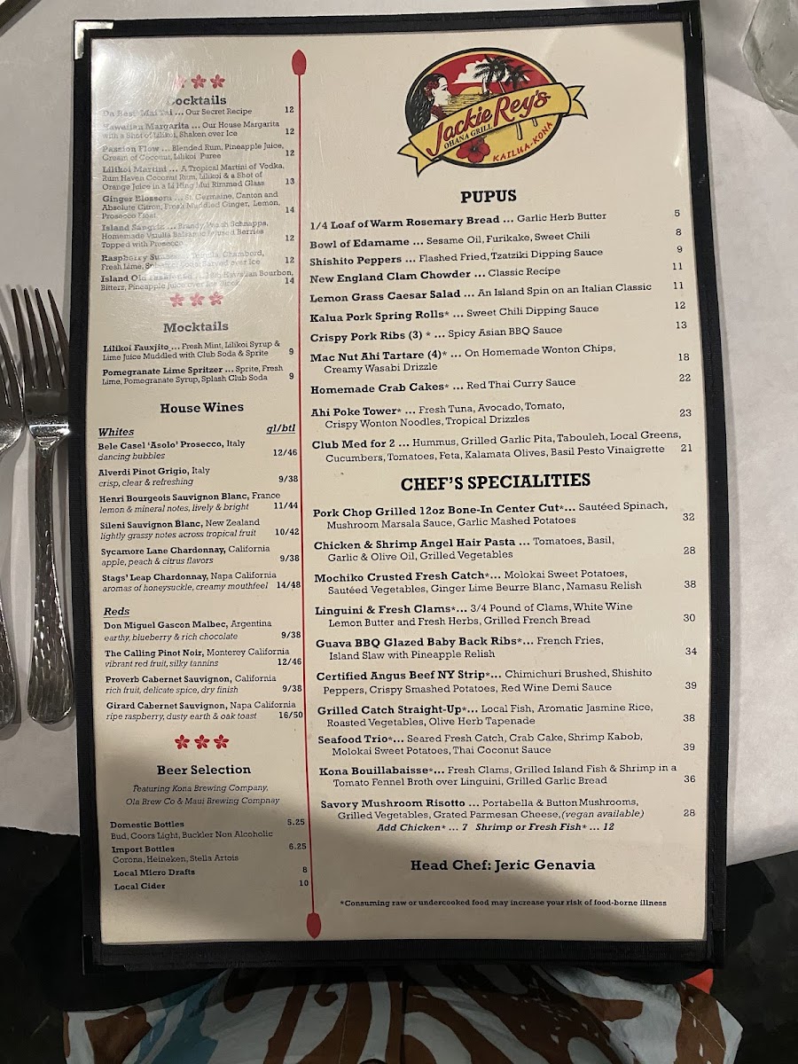Jackie Rey's Kailua-Kona is a culinary gem nestled in Kailua-Kona, Hawaii, where warm hospitality meets vibrant flavors. With a diverse menu offering dishes like succulent crab cakes paired with red Thai curry and mouthwatering coconut shrimp, every meal is a celebration of fresh, local ingredients. The elegant, relaxed atmosphere invites guests to unwind while enjoying expertly crafted cocktails and a thoughtful kids' menu. Patrons rave about the impeccable service and stunning ocean views, making it the perfect setting for special occasions or casual dining. A visit to Jackie Rey's promises not just a meal, but a memorable experience in paradise.